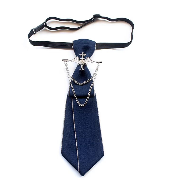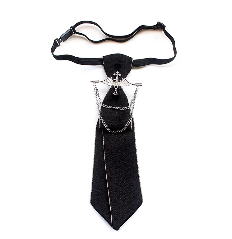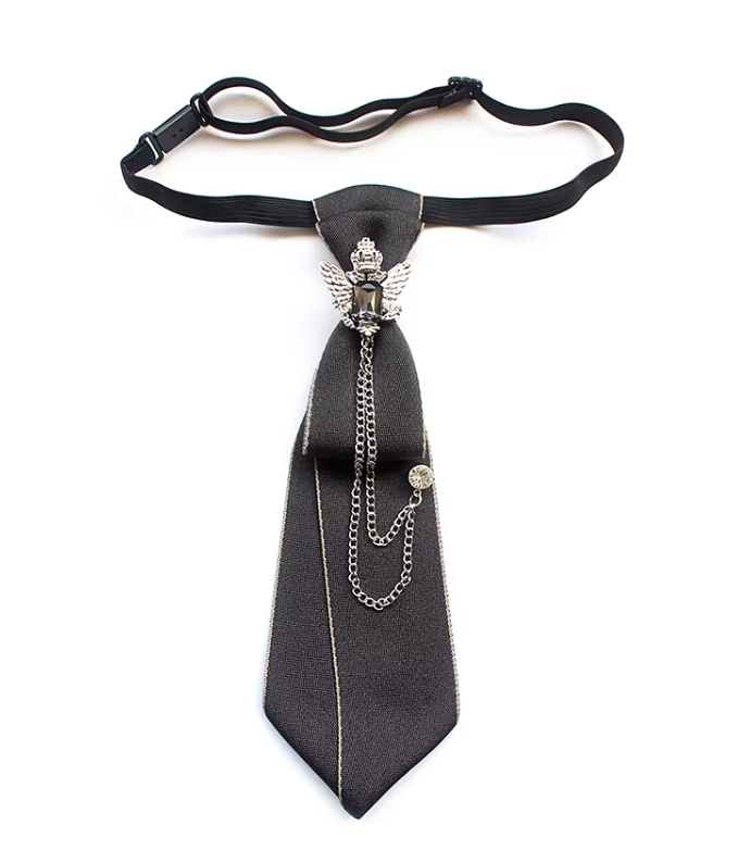 高級感溢れる翼型の金属飾りとチェーンが特徴的な結婚式用ネクタイです。
