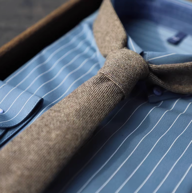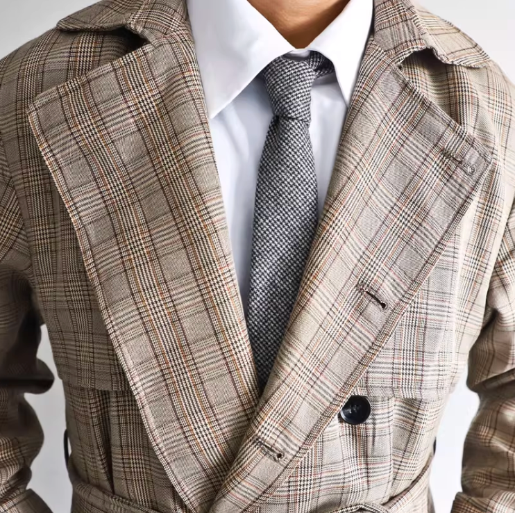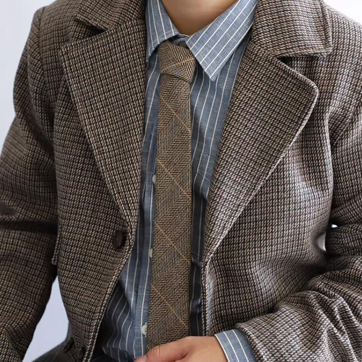 伝統的な織りパターンが織り成す落ち着いた佇まいで、知的な印象を与える