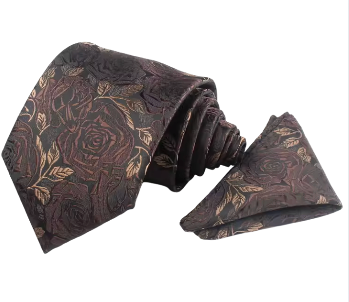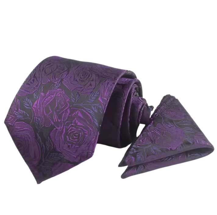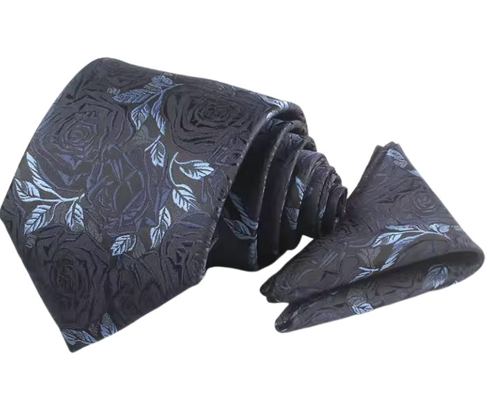 繊細な薔薇の模様が織り込まれた高級感あふれるネクタイです。 シルバーの光沢が上品に輝き、胸元を格調高く演出します。 結婚式や特別な日のフォーマルな装いに最適で、シルクのような質感で着け心地も良好です。