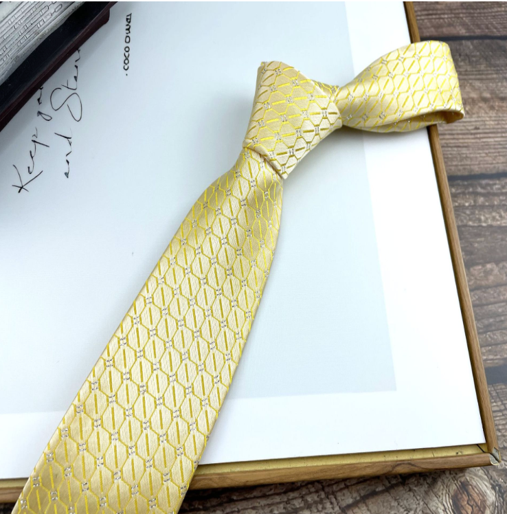 洗練された光沢感と高級感あふれるデザインのネクタイで、特別な日を華やかに演出します。