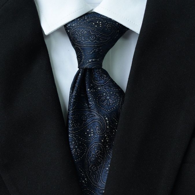 華やかなペイズリー柄が美しく織り込まれた高級感溢れるネクタイです。