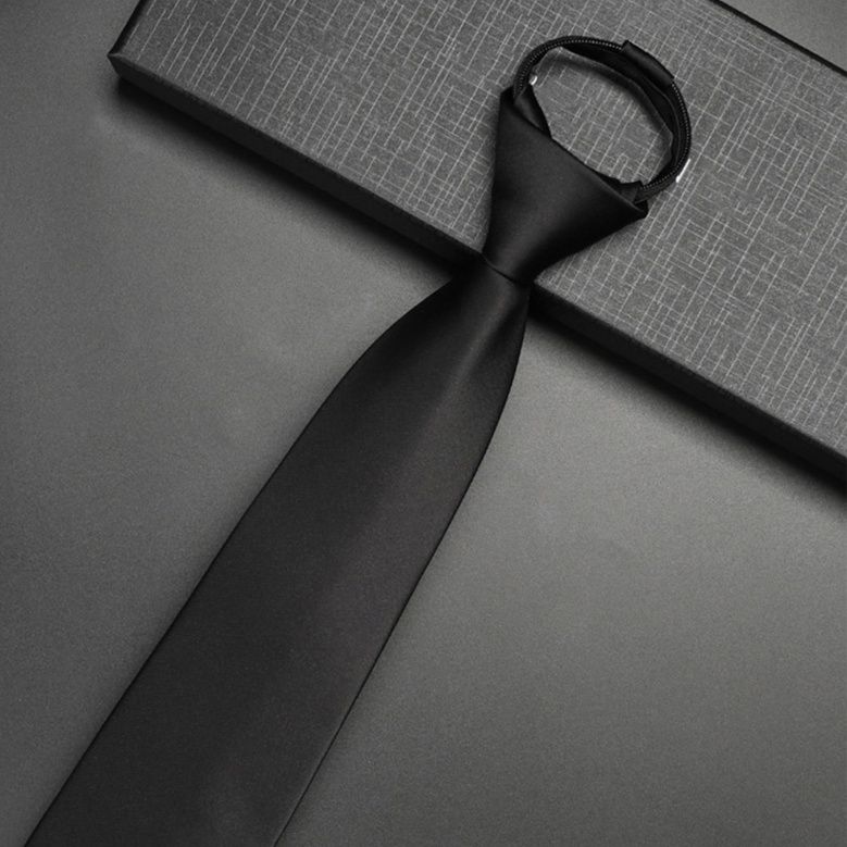 結婚式などのフォーマルな場面で活躍する、ジッパー式で簡単に装着できるネクタイです。 上品な光沢感のあるサテン調の生地を使用し、格式高い雰囲気を演出します。 ワンタッチで着脱可能なため、ネクタイを結ぶのが苦手な方や忙しい朝でもスマートに身だしなみを整えられます。 結婚式のゲストやパーティーシーンに最適な、洗練されたデザインの便利なアイテムです。